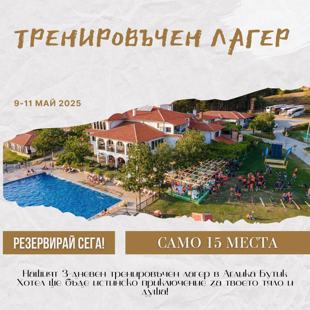 Аглика Бутик Хотел Яз. Жребчево, 8914, Жребчево✅ Специален 3-дневен тренировъчен лагер ✅📅 От 9-ти до 11-ти май📍 Аглика Бутик Хотел 💡 Какво ще правим заедно? 🏞️ Упражнения на открито – дишай чист въздух, движи се свободно и се зареди с енергия🏋️ Специфични упражнения – насочени към подобряване на силата, стабилността и мобилността🧘 Стречинг и мобилизационни техники – за гъвкавост и освобождаване...